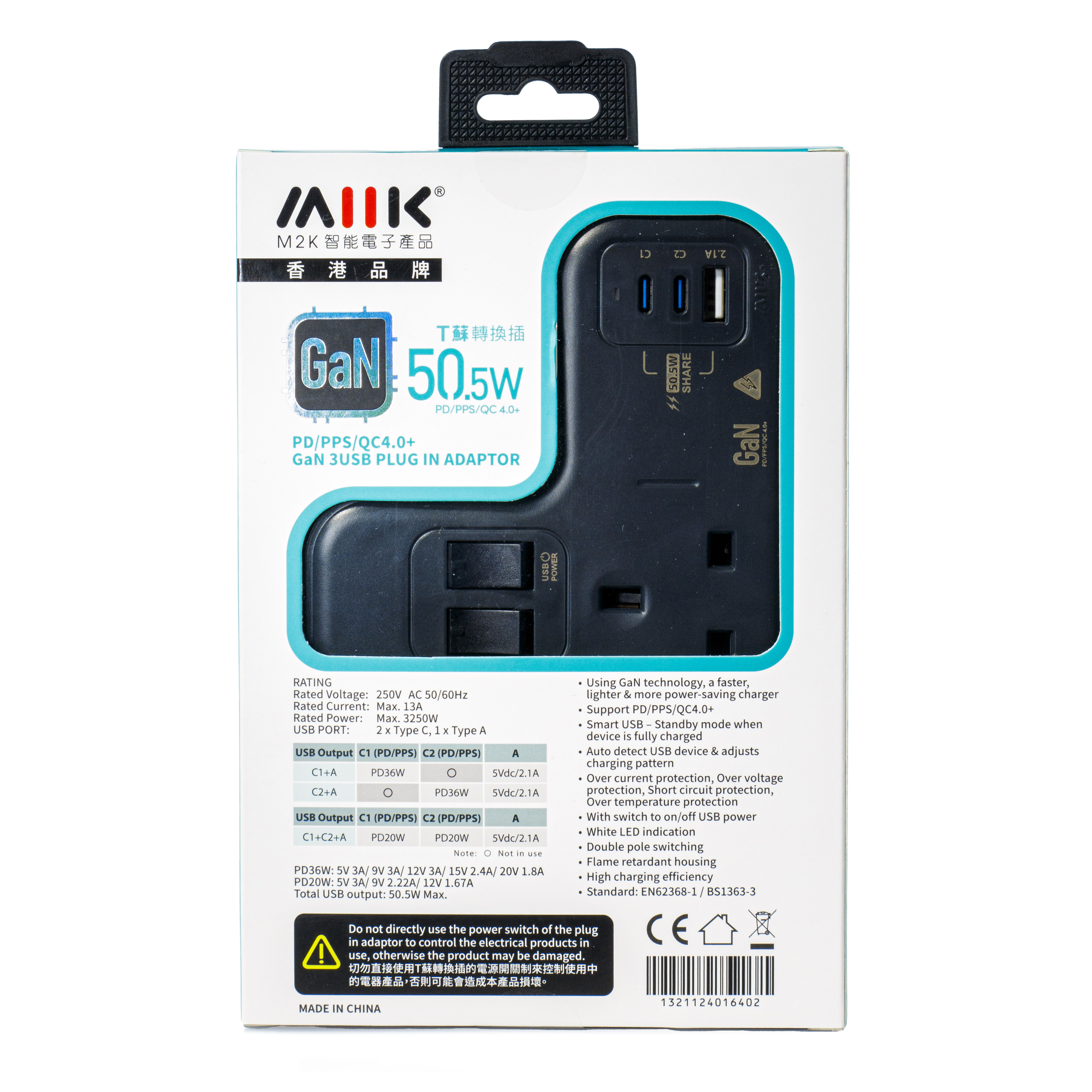 👉3USB共用《總輸出: 50.5W》《C1輸出PD20W, C2輸出PD20W, A輸出2.1A》