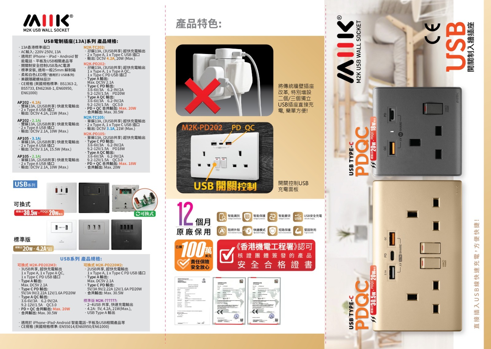 ✅高效能USB輸出《SINGLE OUTPUT: QC3.0 or PD3.0》《TOTAL OUTPUT: 4A》✅輸出配搭:1) PD3.0 (用1個TYPE C)2) QC3.0 (用1個USB)3) 4A Share (2個USB同時用)⭐要確保用家100%安心使用:1) 產品已購買100萬美金責任保險2) 產品已確定符合:- 香港機電工程署核證團體所簽發的產品安全證書- 英國規格標準: EN62368-1/BS1363-2- 歐洲合格認證「CE」。3) 保養期為12個月。