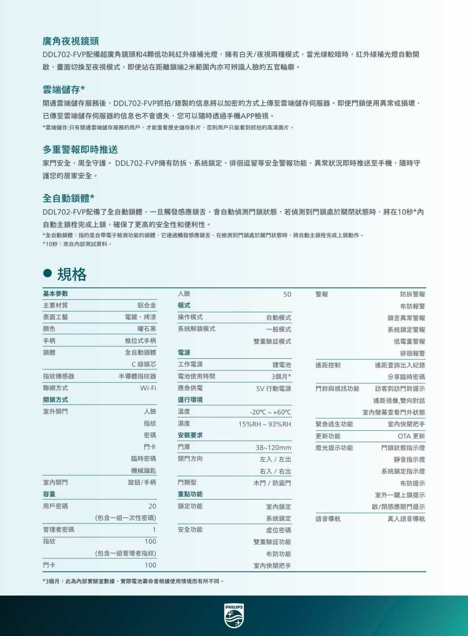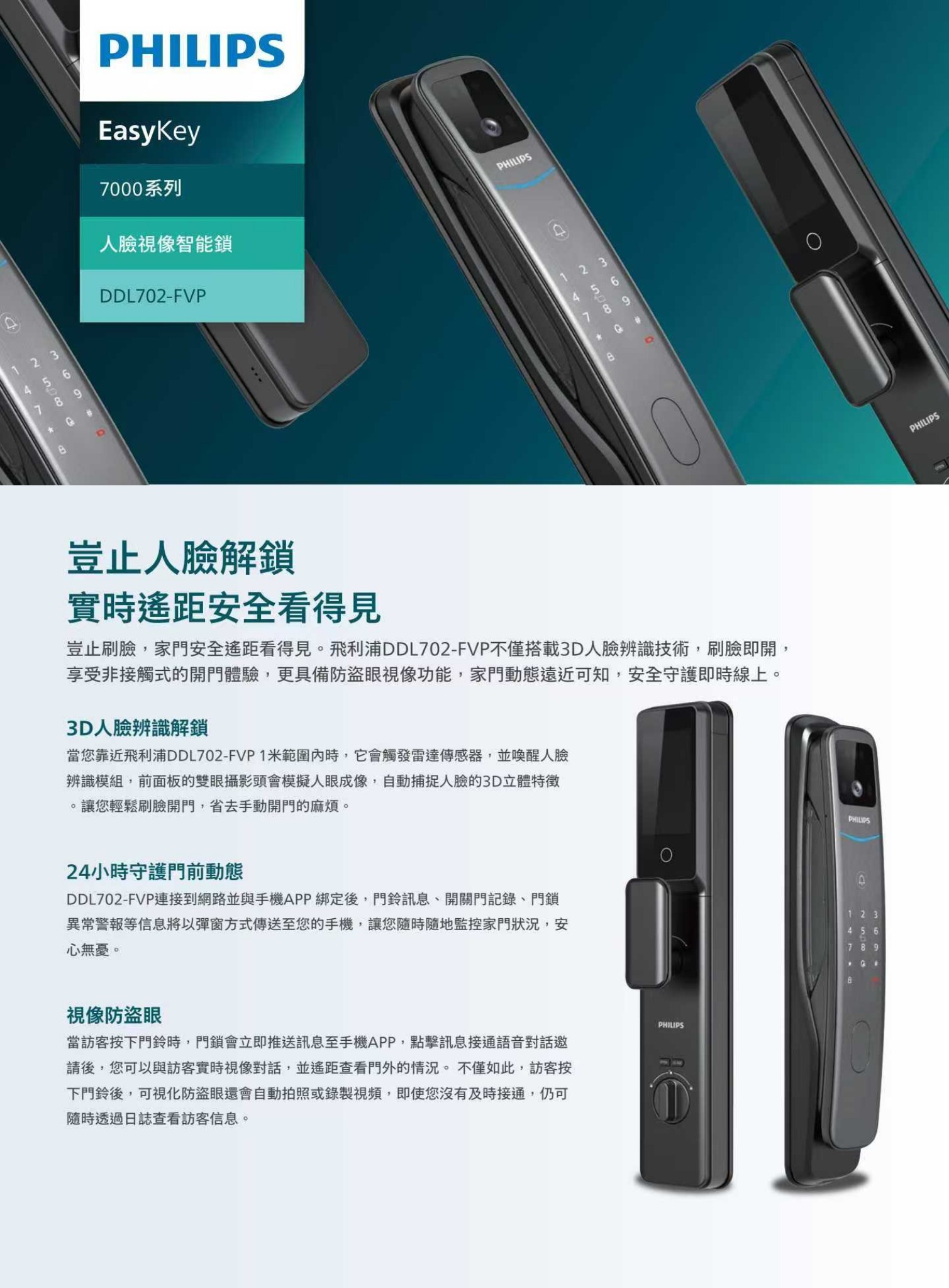 Philips EasyKey DDL702 FVP 人臉辨識/貓眼/指紋/密碼/拍卡/鎖匙/APP智能門鎖(連基本安裝)
