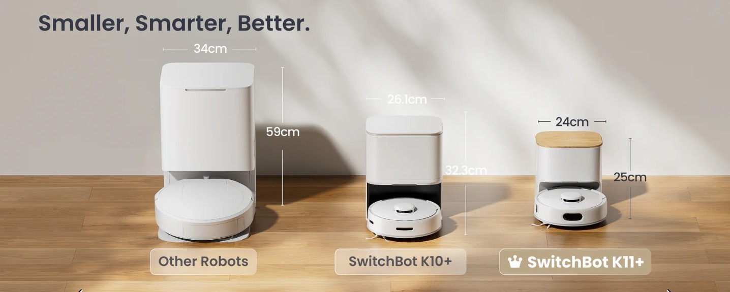 世界上最小的掃地機器人如今更小巧、更強勁。其底座比上一代產品 K10+ 小了 38.9%,但仍擁有 4 公升的集塵容量。直徑僅 24.8 厘米,是目前世界上最小的掃地機器人之一,能夠輕鬆穿梭於床底、沙發底,甚至餐桌腿周圍,實現徹底清潔。重量僅 2.3 公斤,單手即可輕鬆提起,適用於二樓和三樓,是獨棟住宅的理想選擇。